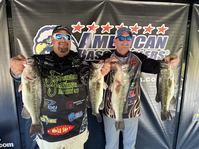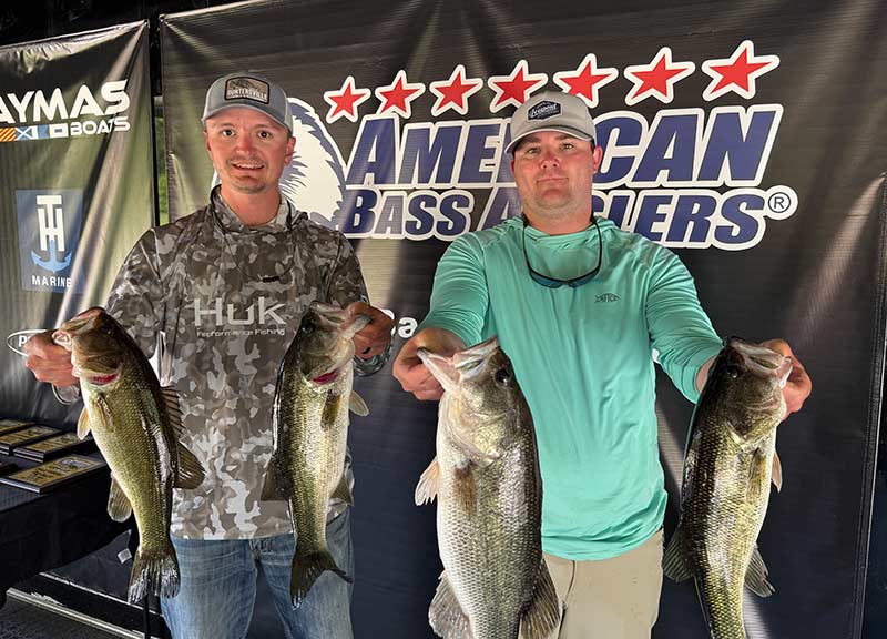 Finishing second was the team of Augustus Adcock and Caleb Bennett with a three-day total of 49.20 pounds. “Practice went well, but the bite slowed down a lot during the tournament,” they shared. “We were bed fishing with a Tokyo Rig on Days 1 and 2. When that dried up, we switched to new water and fished a topwater frog all day to catch what we brought in.”