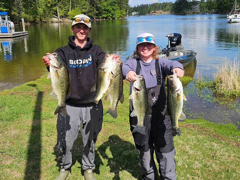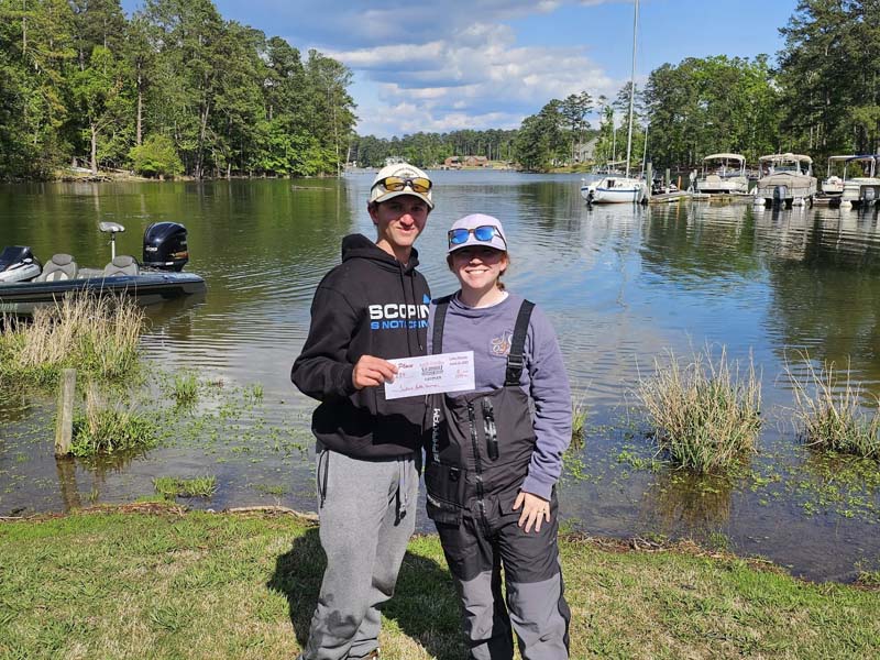 In second place were Cole Taylor and Addyson Hale, who weighed five bass for a total of 17.13 pounds, earning the team $350 in prize money and 196 points. Cole and Addyson caught their bag fishing for schoolers on points early in the morning, then fished docks with wacky worms as the day progressed. Addyson weighed a 4.81-pound bass, breaking the tie with the Veronees.