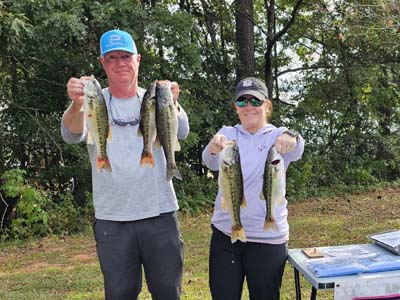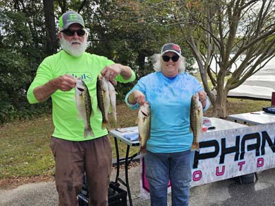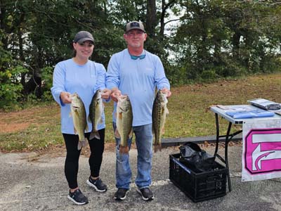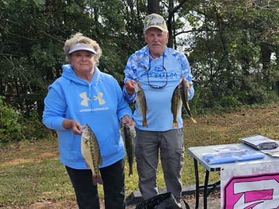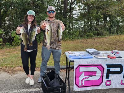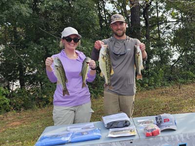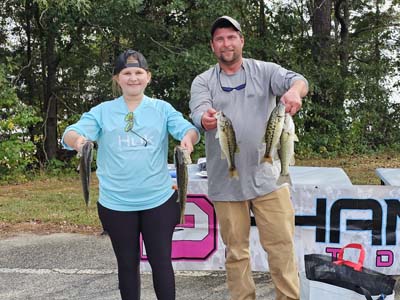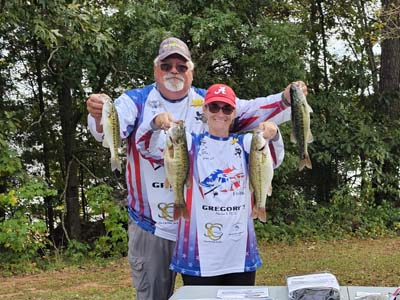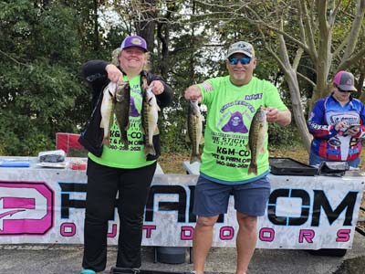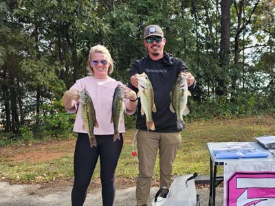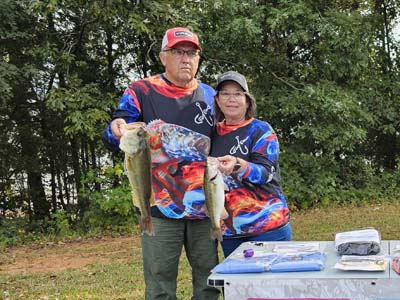 The fourth-place team was Darren and Amy Taylor, bringing 12.50 pounds to the scale. Their catch came on shaky heads on steep banks.
