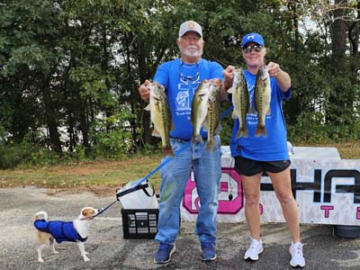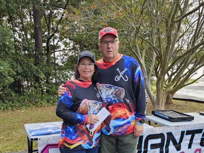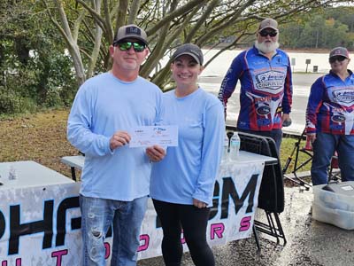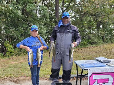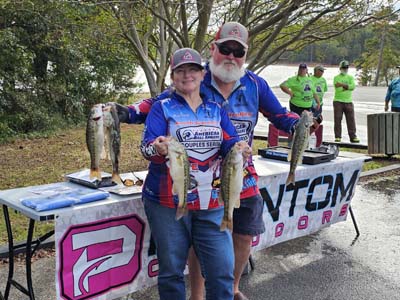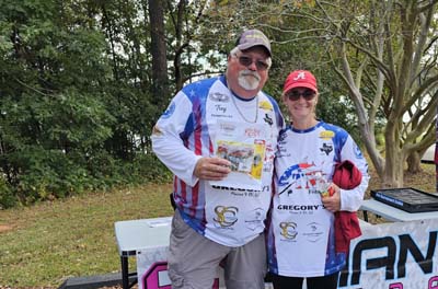 The returning team of Chris and Stacey Gulledge made a strong impression with their third-place finish, weighing in a 12.53-pound sack. Chris’s solid 4.14-pound catch added to their success, earning 198 points and $235.