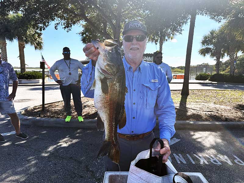 Fall has arrived in central Florida, with air temperatures moderating and water cooling down. Bass were found holding to structure and hunkering under and around visible vegetation. Several competitors focused on throwing top water frogs in grassy areas where explosive bites provided for exciting moments and larger bass.