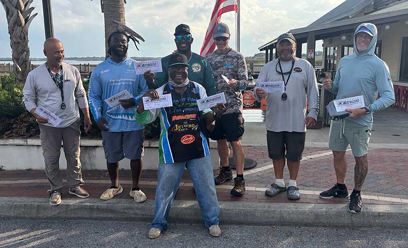 A cold weather front in the area alerted anglers to choose their target locations with the hope of the afternoon sun warming up and rain holding off. Luckily, both occurred. It was noted that several of the Florida anglers were wearing long pants and shoes, which is an indicator that many took the weatherman seriously. Water temperatures were in the high 60s with some areas in the low 70s by afternoon. From second place to sixth place, there was less than a 2-pound separation. There were 3 fish over 6 pounds weighed in and 3 more that were in the 5-pound range.