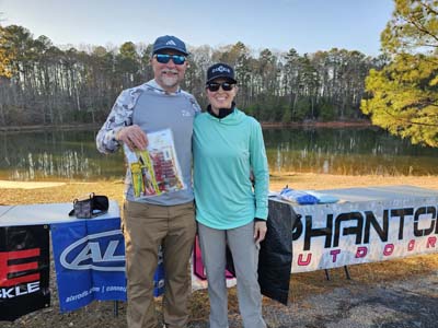 December 13, 2025, Elberton, GA –Ben and Ashley Sutton from Gloverville, SC, secured their third win of the 2026 season at the fourth tournament of the South Carolina Couples Trail, Division 11, held on Lake Russell. The day turned into a beautiful day on the water with all twelve teams that braved the cold morning weighing in a 5-bass limit.