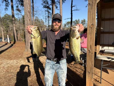 David Lowery of Milledgeville, GA, secured the second place trophy and $487 cash with a scale weight of 13.49 pounds for his 5 bass limit. David landed a 5.96 pound largemouth bass to win the optional Big Bass pot of $380 cash and the Big Bass trophy.