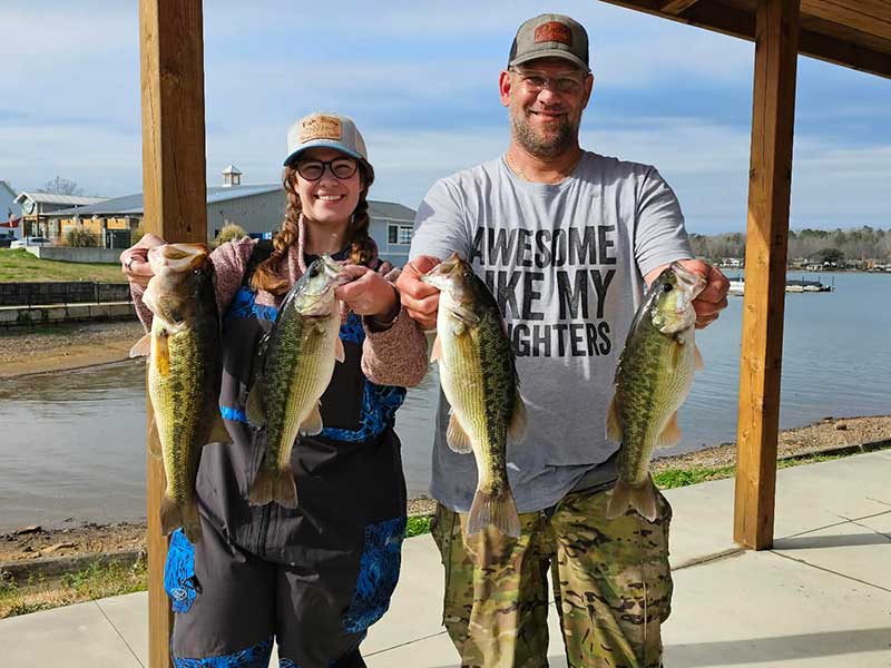 In second place, Trad and Daelyn Whaley, our father / daughter team, brought in a total of 13.77 pounds, anchored by Trad’s 3.80-pound bass. Their efforts earned them 199 points and $394.