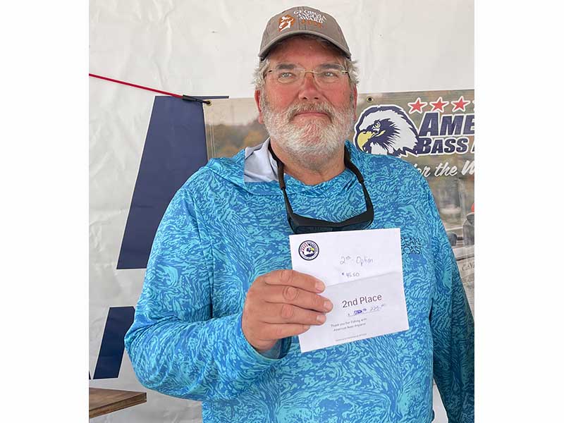 Second place went to Dennis Shiley of Adairsville, AL, with a 5-bass limit at 17.25 lbs, earning him $223.